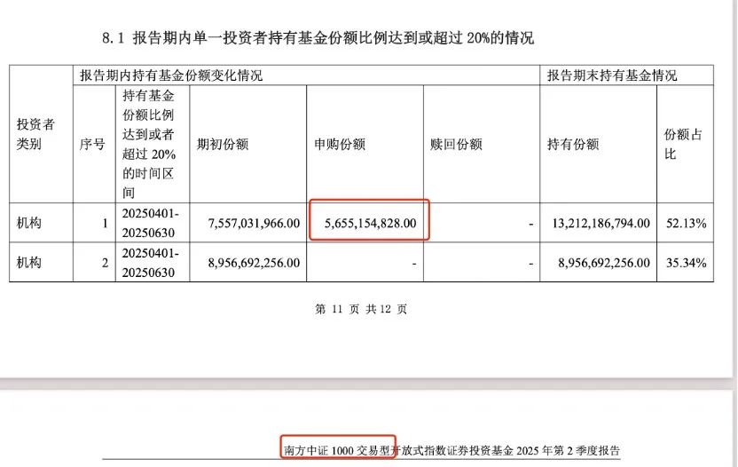中央汇金在今年二季度增持了南方中证1000ETF,“机构1”申购56.55亿份,以该ETF在2024年披露的前十大持有人对照,“机构1”为中央汇金资管有限公司,以4月7日收盘价估算,中央汇金资管增持高达130亿元。