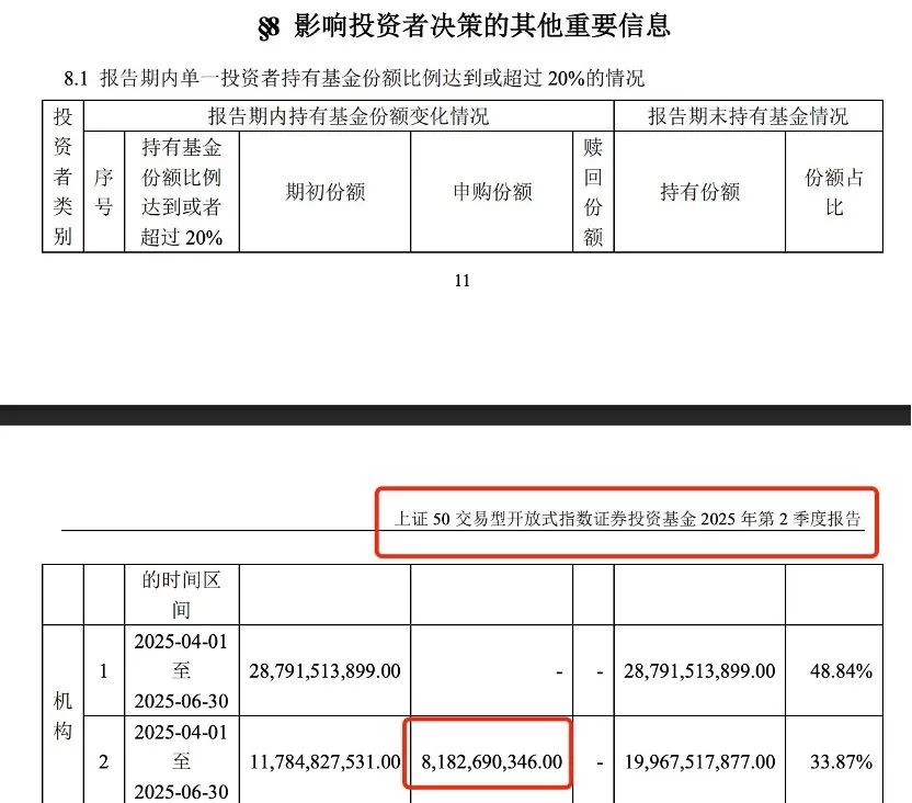 沪深300之外,中央汇金还增持了多只覆盖大盘、中盘风格的ETF。以华夏上证50ETF为例,今年二季度,“机构2”,也就是中央汇金资管公司增持81.83亿份,估算增持近220亿元。